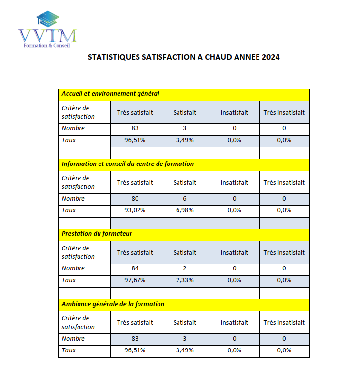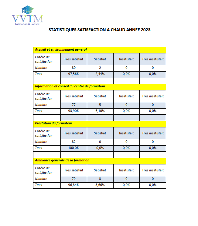 Capacité de transport, VVTM Formation, statistiques-de-satisfaction 2022